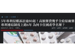 5年專利侵權訴訟逾80起!高額藥費幾乎全給原廠藥...專利連結制度上路6年 為何卡住國產學名藥?