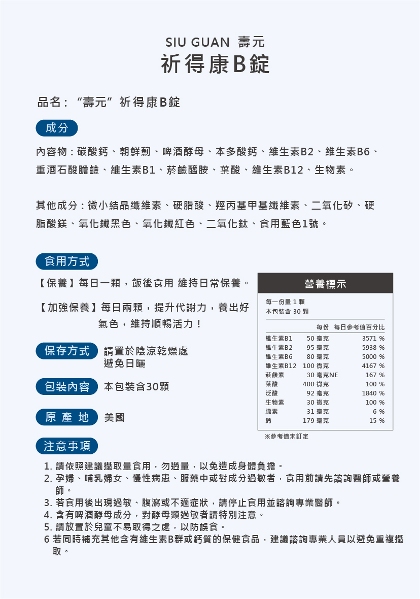 美國-祈得康B錠 (30顆/盒)