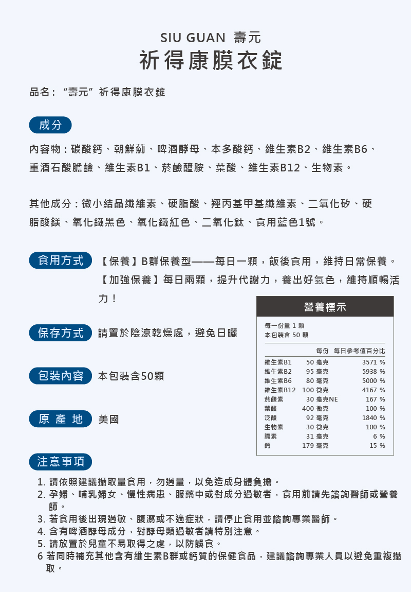 排裝-祈得康B錠 (50顆/盒)